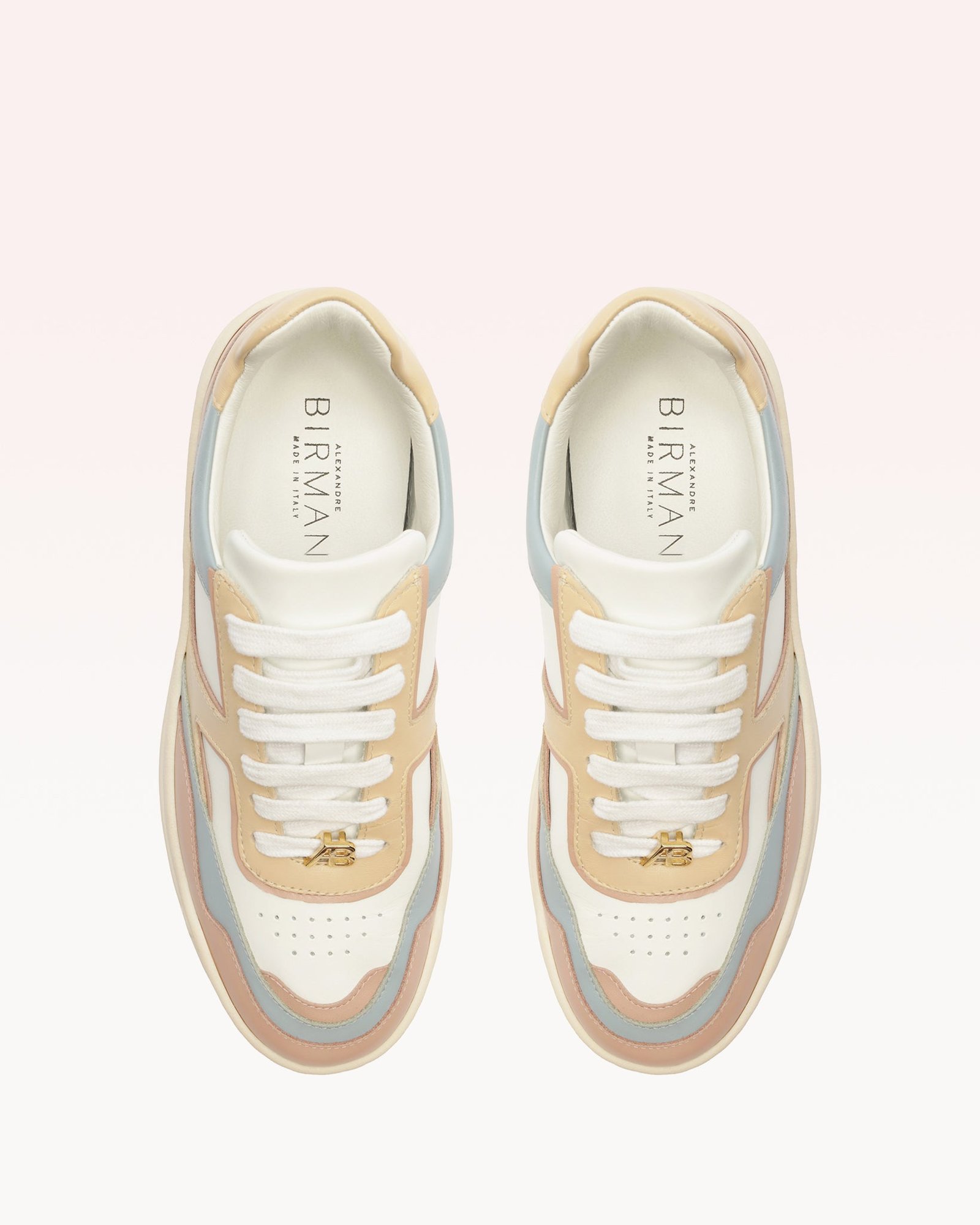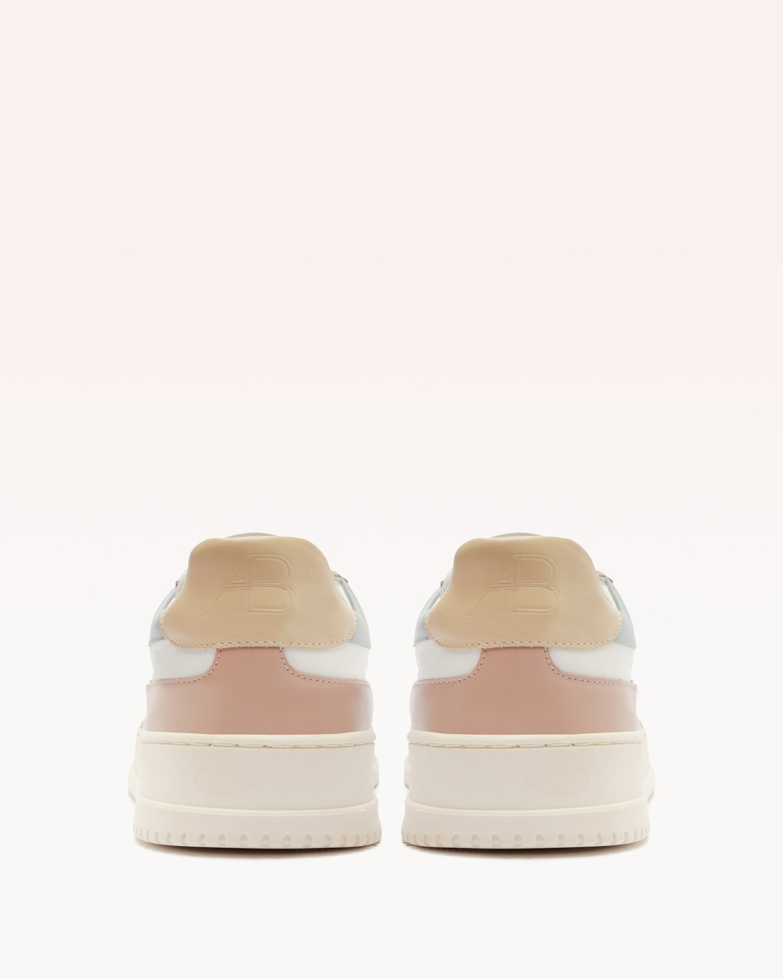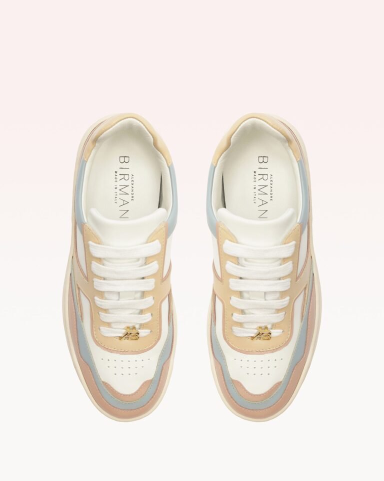 Introducing the latest addition to the Alexandre Birman collection. a contemporary sneaker that combines timeless style with modern elements. With its classic sneaker shape. this footwear exudes effortless cool while providing all-day comfort. The lace-up fastening ensures a secure fit. allowing you to conquer your day with confidence. The design showcases a clean white base sole and exquisite white leather. Adding a touch of luxury. an elegant AB initials metal detail adorns the sneaker. reflecting the brand’s commitment to craftsmanship and refinement. With these sneakers. Alexandre Birman presents a fresh interpretation of casual chic creating another icon that transcends trends.