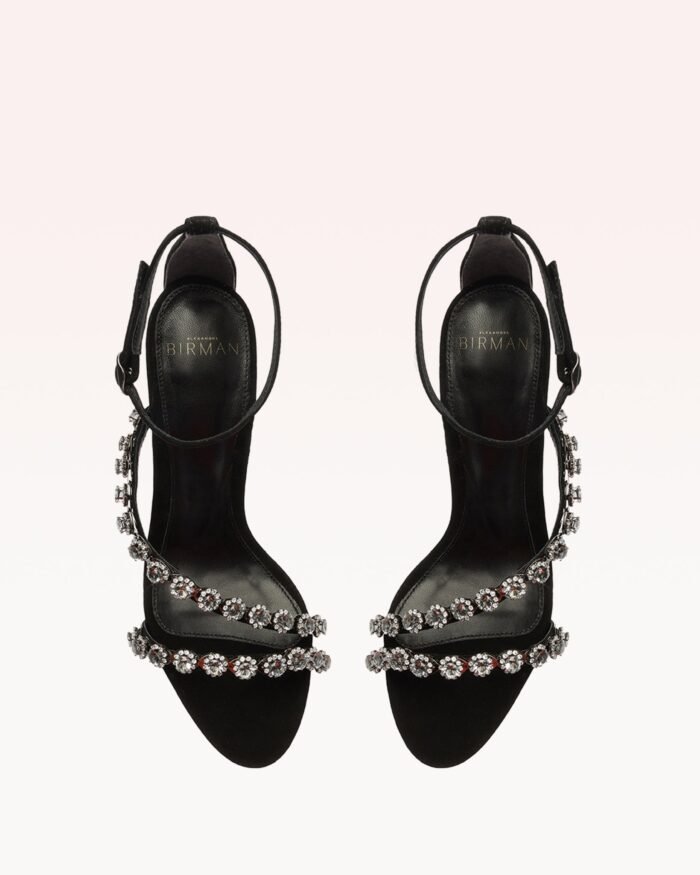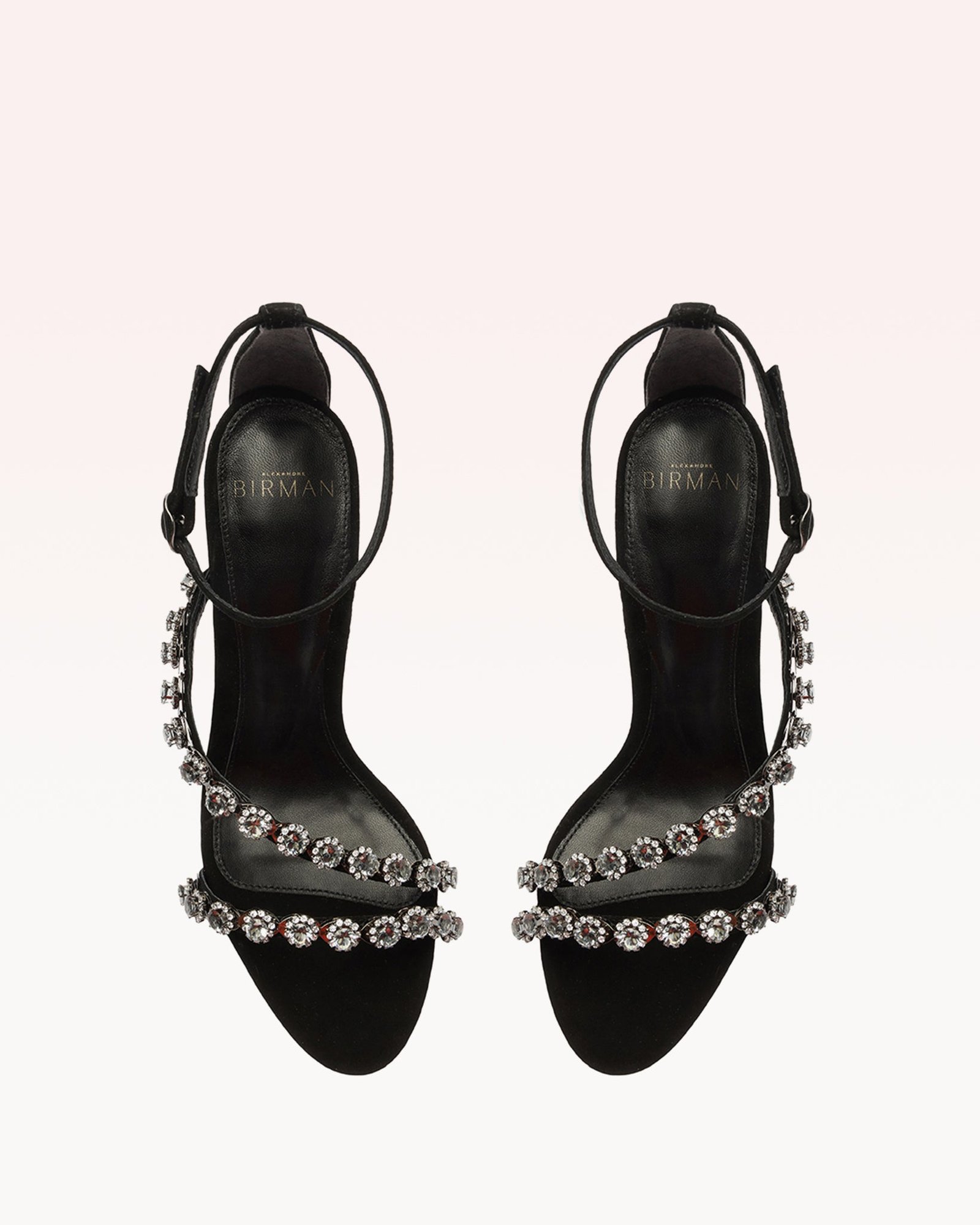 Crafted from suede with sparkling details. the Cara Sandal is a soaring silhouette that shines with every step.