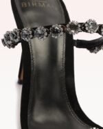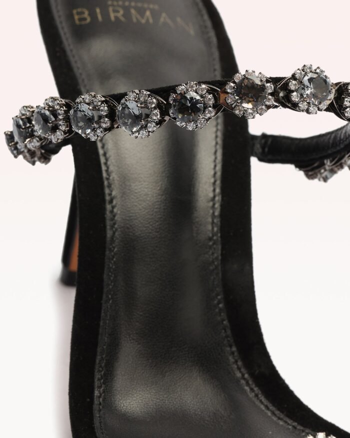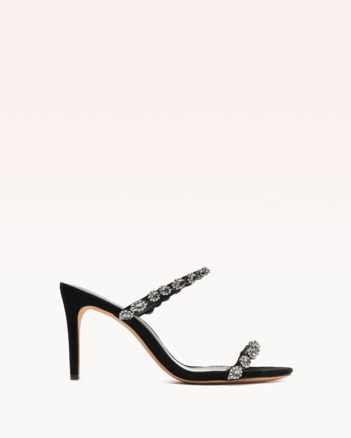 Crafted from suede with sparkling straps. the Cara Sandal is a soaring silhouette that shines with every step.