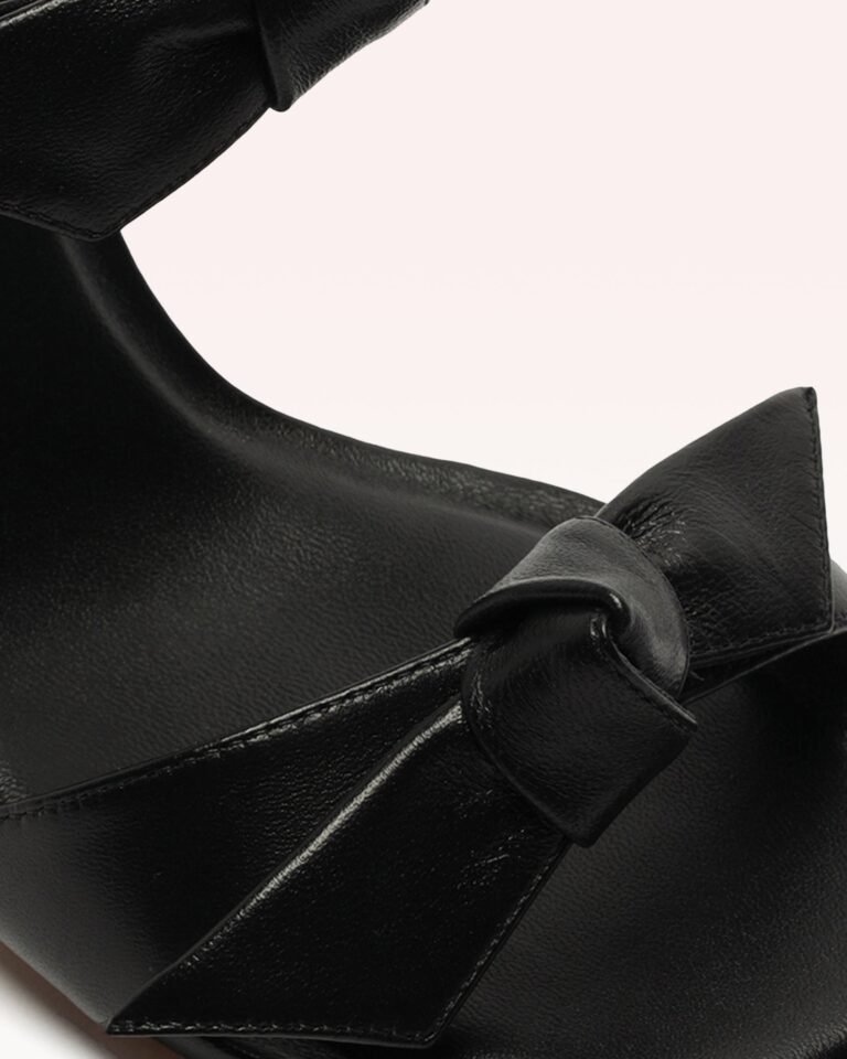 Designed with a strong and effortlessly chic silhouette. the Clarita Square Flare showcases an of-the-moment square toe and flared stiletto heel. Handcrafted from supple leather. this fashion-forward style is also instantly recognizable. thanks to our iconic Clarita bows on its double straps. Padded insoles provide all-day comfort. too.