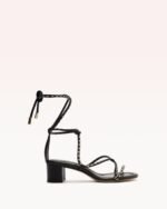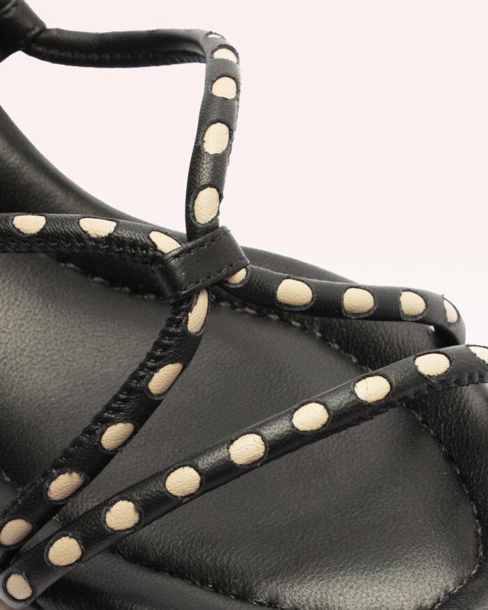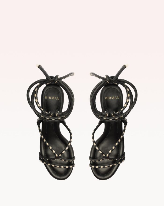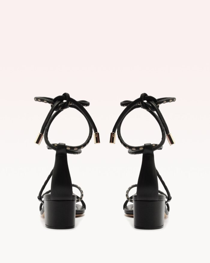 Indulge in luxury with the Donna Block heel sandals. Delicately wrapped leather tubulars and colorful round leather tubes create a feminine lace-up design. adding playfulness to the aesthetic. The extra comfortable insole guarantees a breezy step. Elevate your summer look with this stylish and practical sandal.