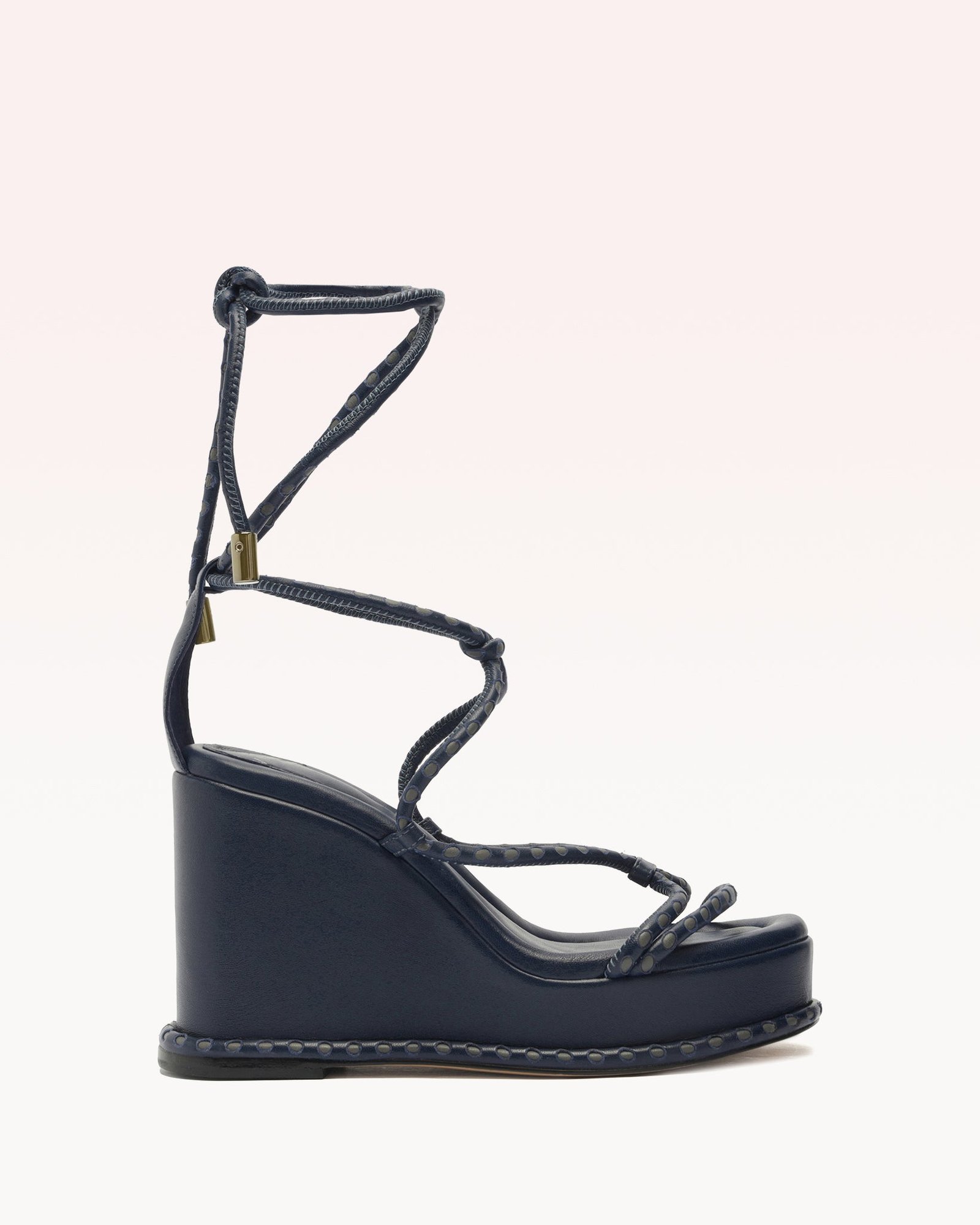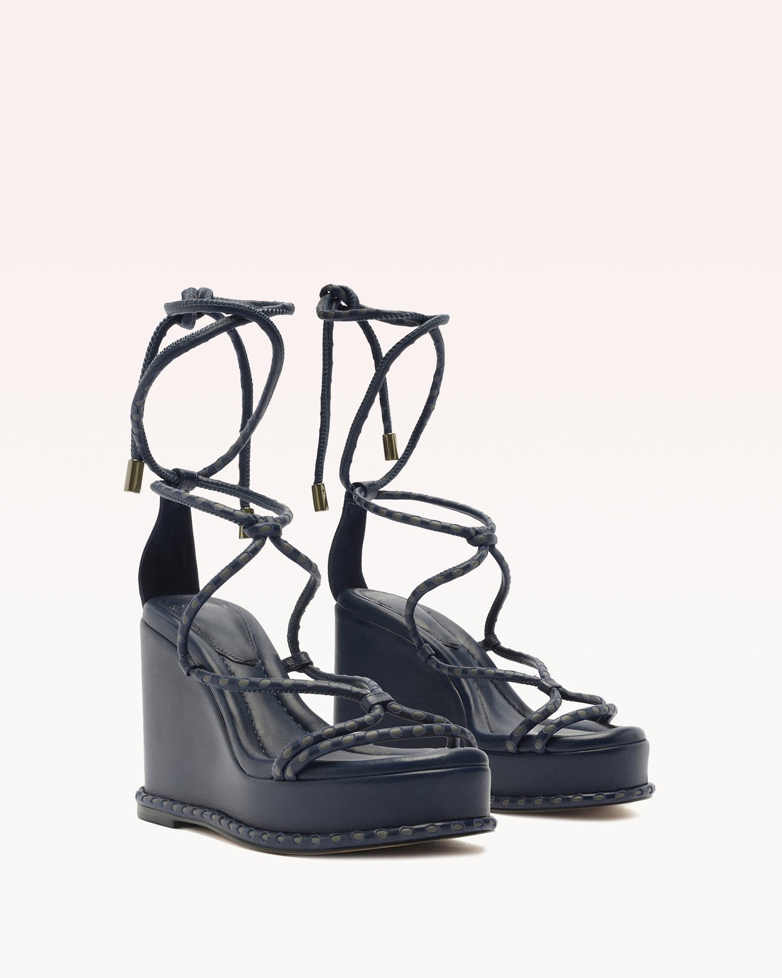 Indulge in luxury with the Donna Wedge sandals. Delicately wrapped leather tubulars and colorful round leather tubes create a feminine lace-up design. adding playfulness to the aesthetic. The extra comfortable insole guarantees a breezy step. Elevate your summer look with this stylish and practical sandal.