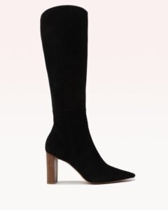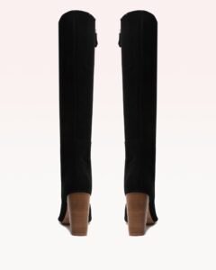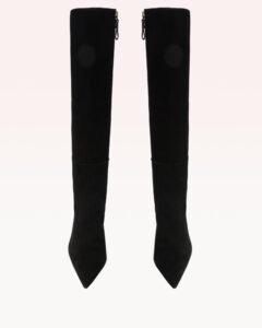 Striking because of their simplicity. the Elisa Boot is entirely crafted in our Scamoscia leather for a luxe velvet look. A sharp pointed toe. elegant tall shaft boot. and a comfortable stacked heel complete its refined look. Wear this sophisticated staple day in and day out for the ultimate in effortless glamour.Â