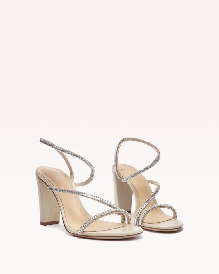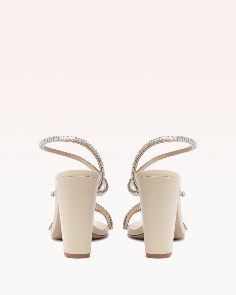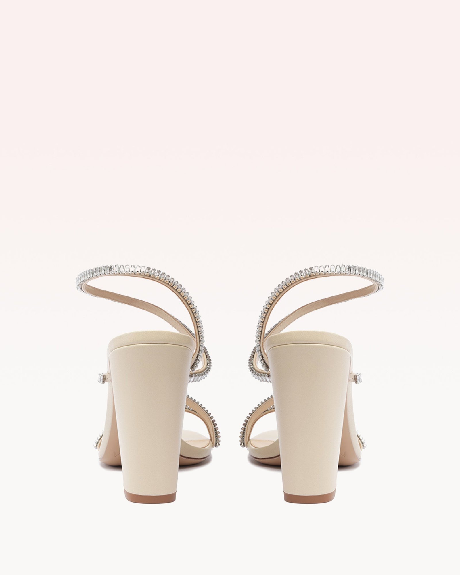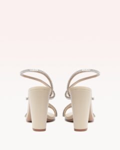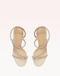 A sparkling statement. our Polly Sandals are back just in time for holiday season. Embellished with delicate straps of shimmering zircons. which create a floating illusion across the foot.